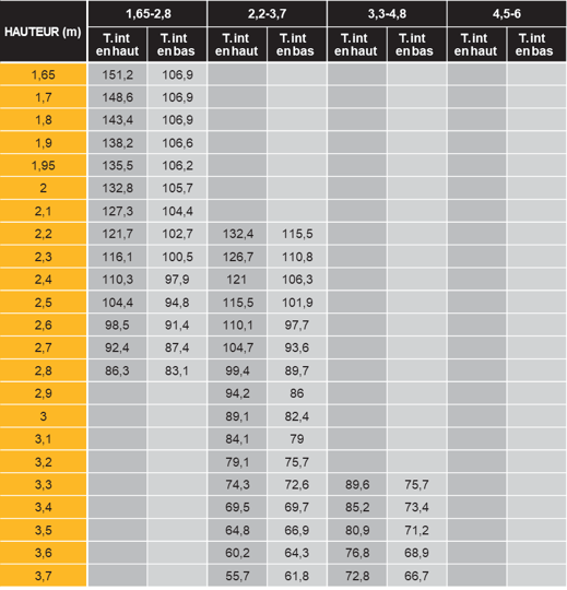 Le tableau qui suit indique les charges d'utilisation (kN) de l'étais ALUPRO en fonction de la hauteur Pour chaque cas, sélectionner le plus approprié en fonction de la charge